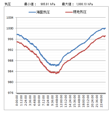 下記は、こちらで測定した気圧をグラフにしたものです。
